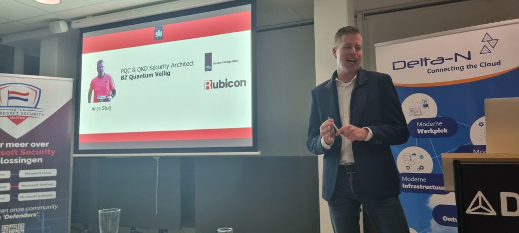 Later op de avond nam Anco Stuij iedereen mee naar de rand van het quantumtijdperk. Geen futuristische ver-van-je-bed-show, maar een keiharde realiteit waarin quantumdreigingen onze beveiliging opnieuw definiëren. Met een live demonstratie van Post-Quantum Cryptography gecombineerd met Quantum Key Distribution rechtstreeks op het proefnetwerk van het Ministerie van Buitenlandse Zaken liet hij zien hoe we vandaag al stappen kunnen zetten. Dankzij de concrete handvatten uit Microsoft’s Quantum Safe Program konden bezoekers direct aan de slag met maatregelen die hun communicatie écht klaarstomen voor morgen.