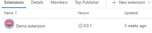 We hoeven nu niets meer aan de pipelines te doen, dus zodra je de code commit, wordt door de buildpipeline automatisch de patch versie van de extension met 1 verhoogd.