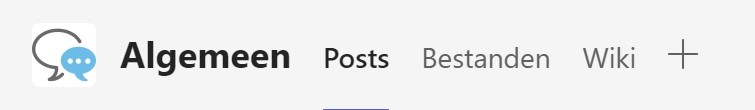 Tabbladen – ieder kanaal bestaat uit een aantal standaard tabbladen. Dit zijn: Posts, Bestanden en Wiki. Daarnaast heb je de mogelijkheid om zelf aanvullende tabbladen toe te voegen aan een kanaal met de ‘+-knop’.