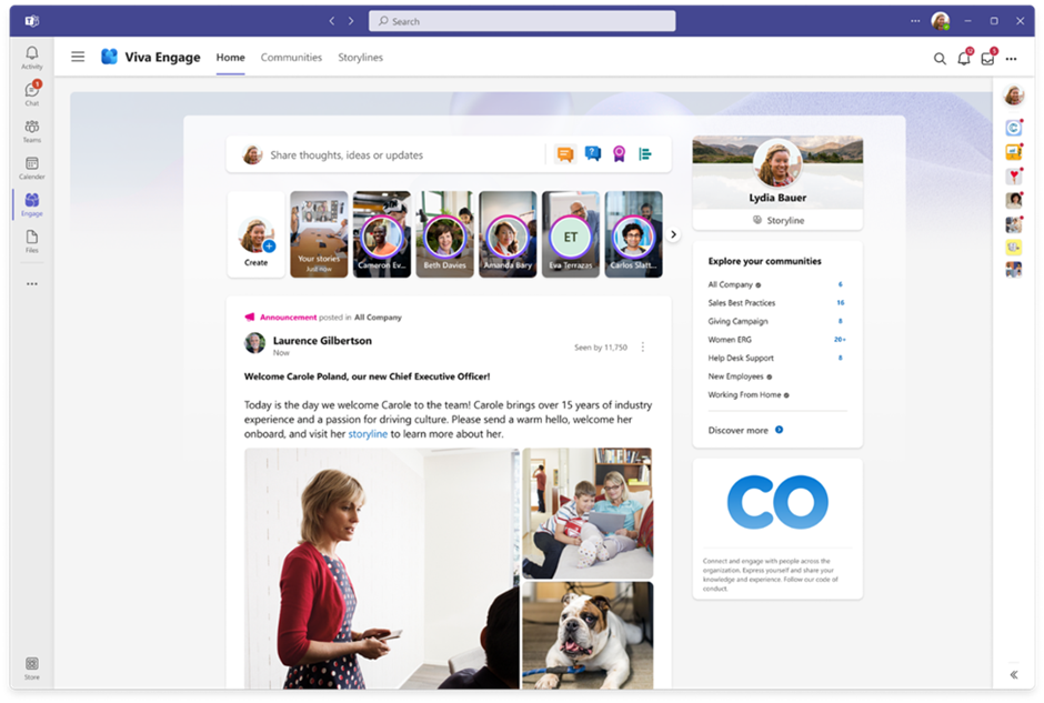 Viva Engage is in het leven geroepen om de werknemers binnen een organisatie weer samen te brengen. Aan de hand van stories, storylines, communities en empoyee following kunnen werknemers weer invulling geven aan het sociale aspect van hun werkdag. Je kunt het een beetje zien als een interne Facebook voor je organisatie.