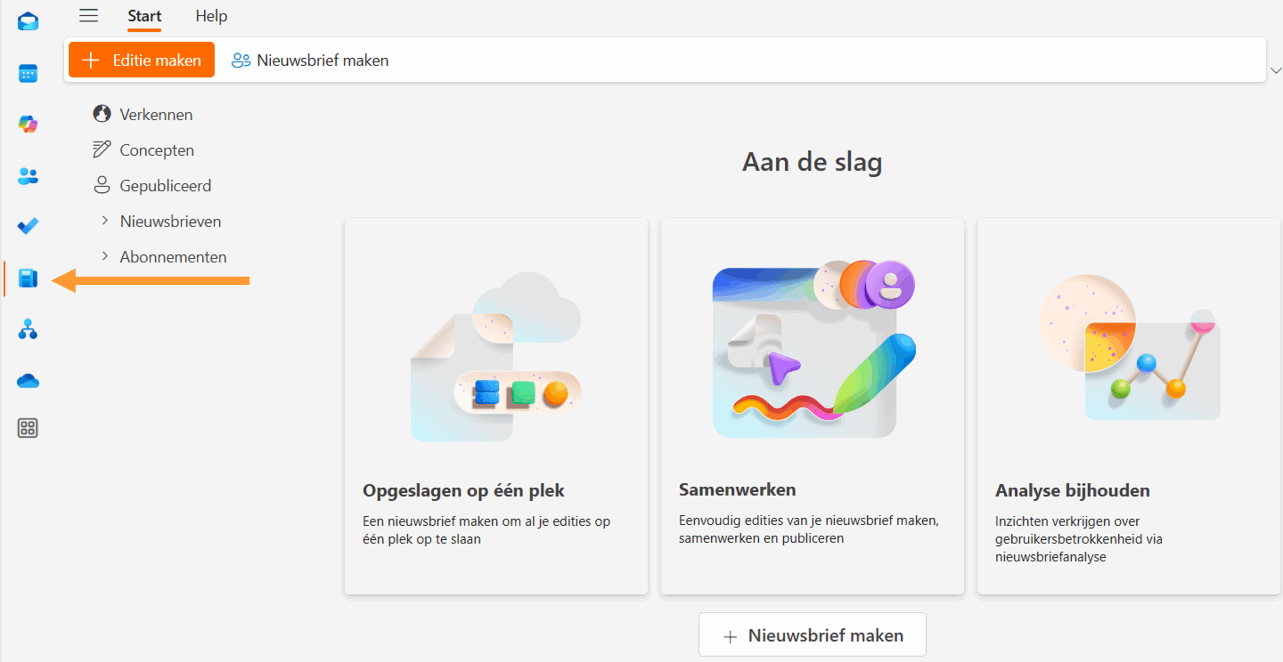 Selecteer Nieuwsbrieven in het menu van Outlook om van start te gaan
