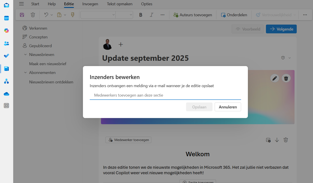 Nu óók Outlook Nieuwsbrieven voor interne communicatie