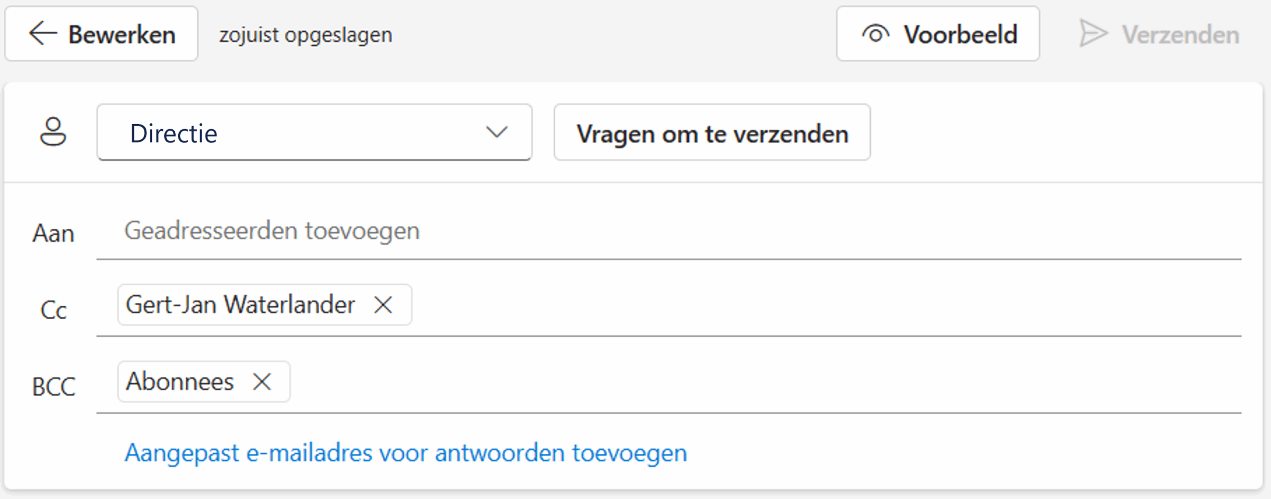 - Ontvangers bepaal je zelf en/of via de abonneermogelijkheid;