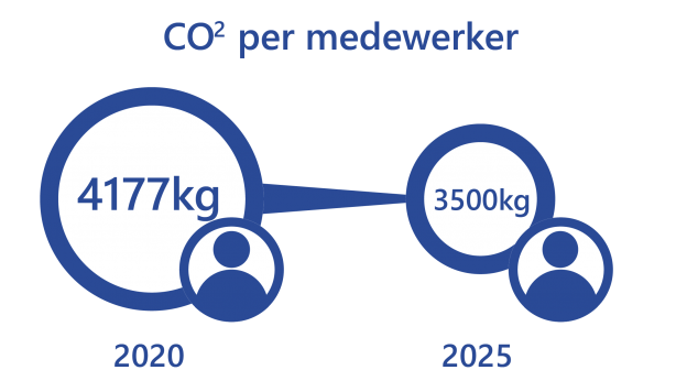 Van mei 2019 t/m april 2020 was onze CO2 voetafdruk 4177 kg per medewerker groot (totaal 229.717kg). In 2025 hebben we dit gereduceerd tot 3500 kg per medewerker.