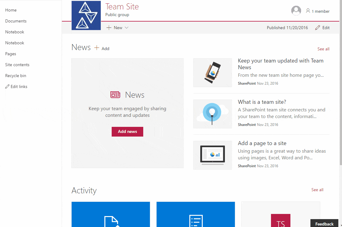 Met eenvoudig op te maken pagina’s kunnen jouw medewerkers op een aantrekkelijke manier informatie en nieuws presenteren. Hierbij kun je zelf aan een pagina teksten en afbeeldingen toevoegen. Door middel van standaard Webparts voeg je een voorbeeld van een document, een PowerBI dashboard of een PowerApp toe. Een SharePoint-pagina biedt jou daarmee de mogelijkheid om informatie met alle bijbehorende inhoud overzichtelijk weer te geven.