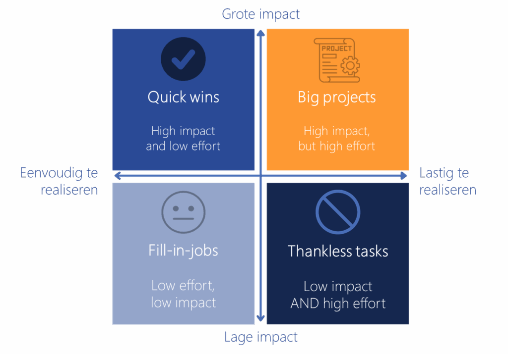 - Hoeveel voordeel levert het op (tijd, geld of, kwaliteit)?